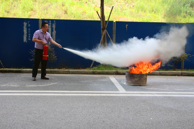 部分員工進行滅火器使用實操