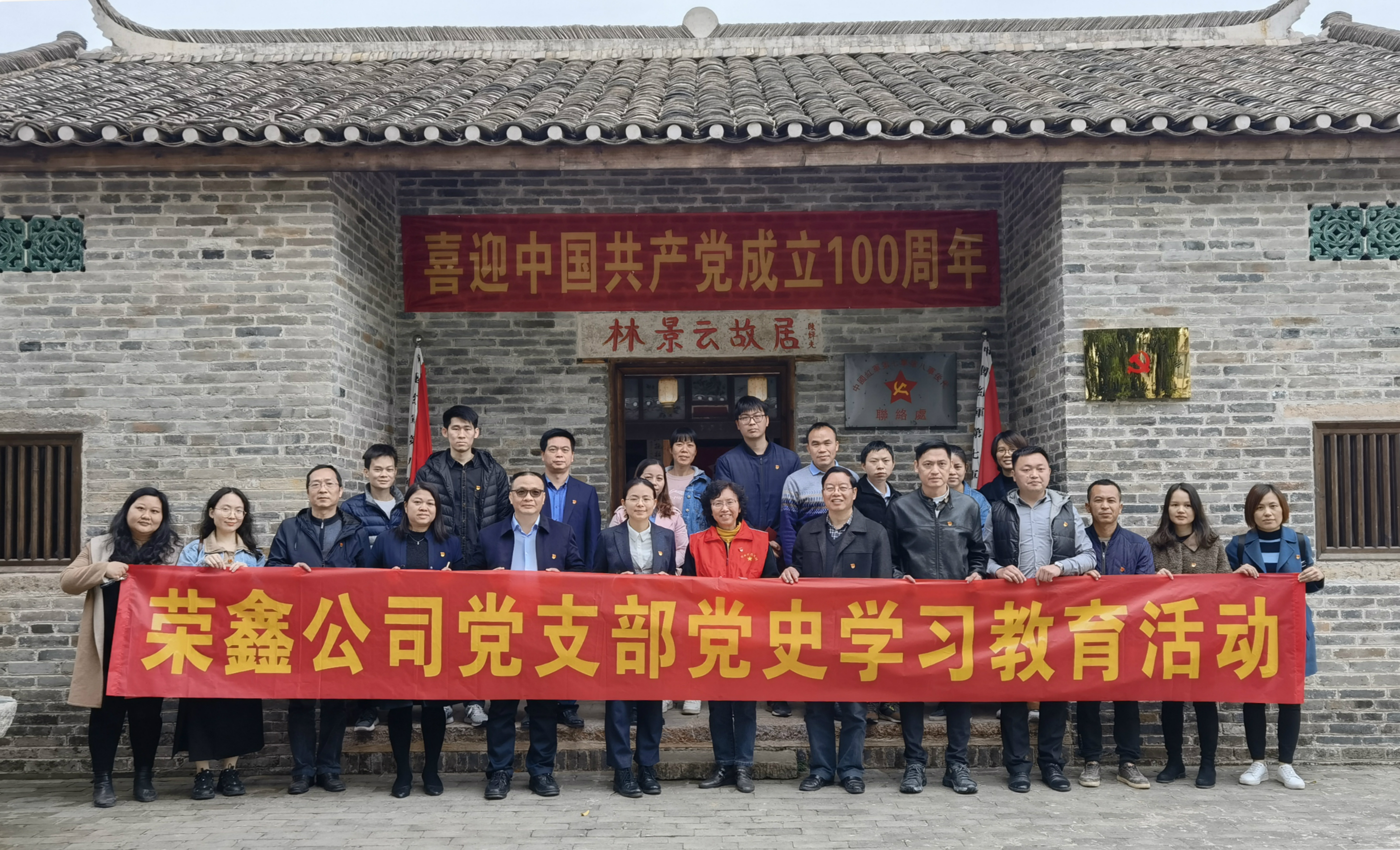 榮鑫公司黨支部全體黨員在林景云烈士故居合影
