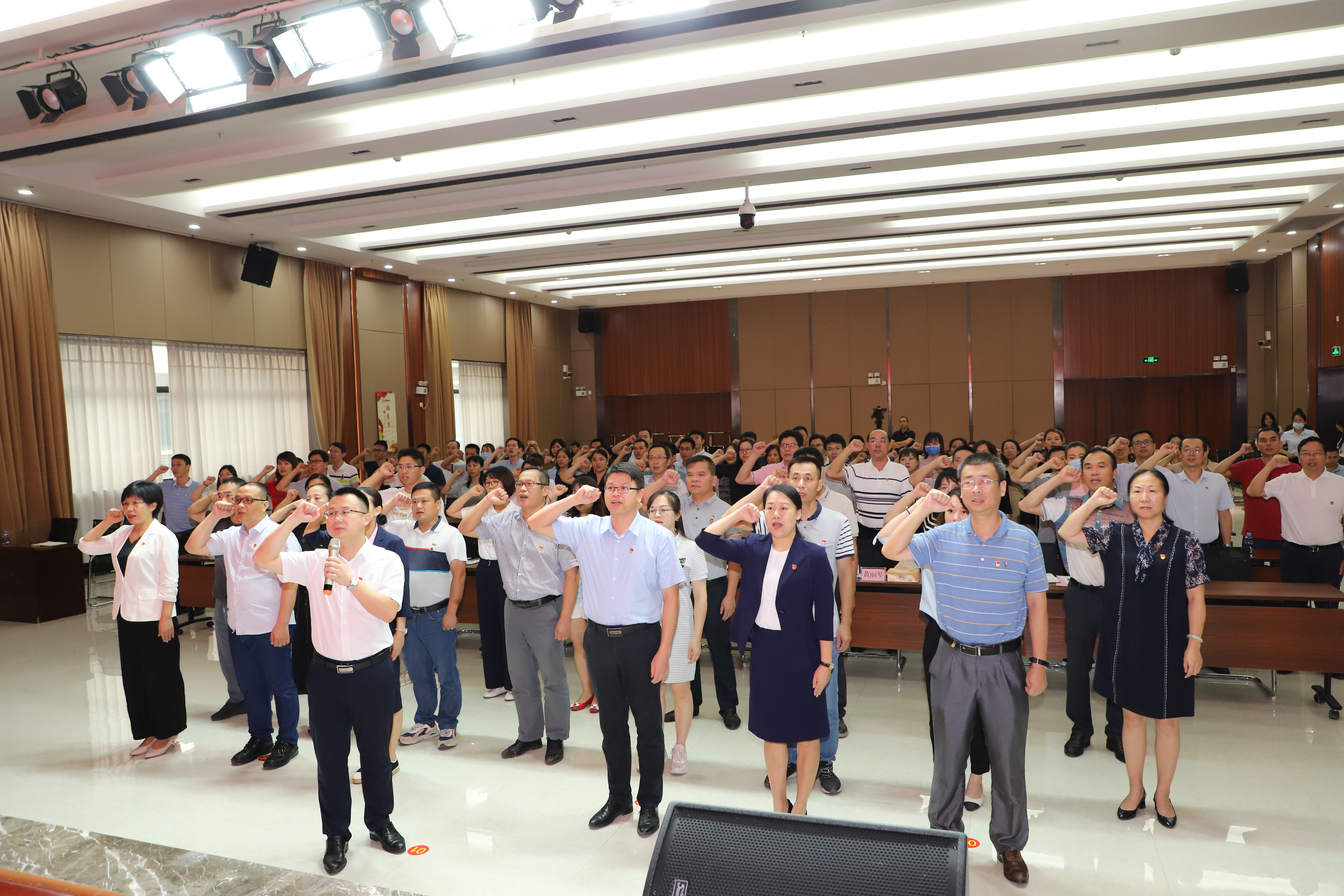 “我志愿加入中國共產(chǎn)黨,擁護(hù)黨的綱領(lǐng),遵守黨的章程,履行黨員義務(wù)……”迎著黨旗、舉起右拳,在集團(tuán)黨委書記、董事長龔國強(qiáng)的帶領(lǐng)下,綠港集團(tuán)7名新入黨黨員莊嚴(yán)地宣讀了入黨誓詞、98名老黨員同志重溫了入黨誓詞,大家在入黨誓詞中回顧初心,銘記宗旨,接受了一次心靈的洗禮。