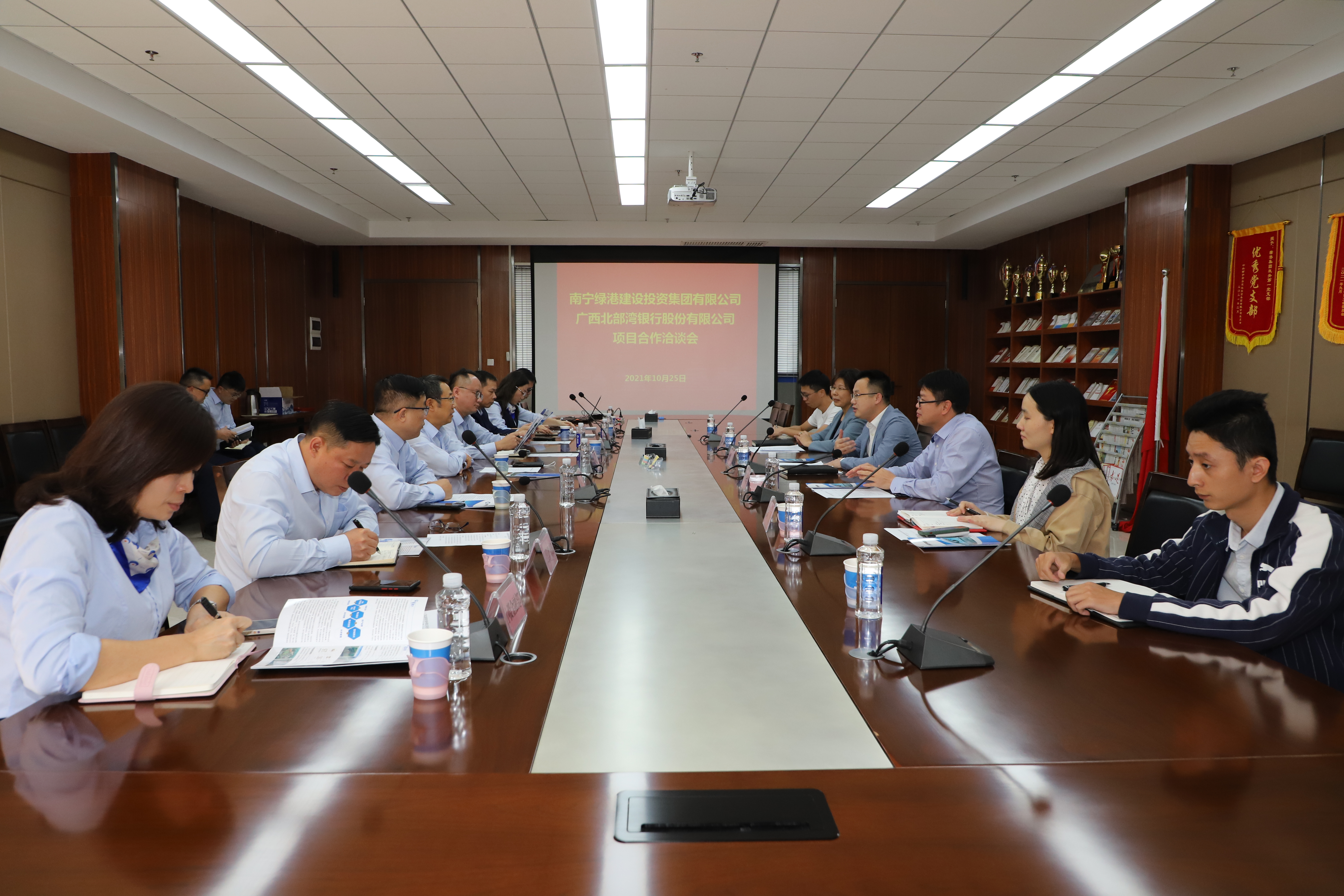 10月25日,廣西北部灣銀行黨委副書記、行長(zhǎng)紀(jì)志順,行長(zhǎng)助理、營(yíng)業(yè)部總經(jīng)理黃林平等一行到訪綠港集團(tuán),雙方就進(jìn)一步深化務(wù)實(shí)合作以及未來業(yè)務(wù)發(fā)展方向等方面進(jìn)行洽談,綠港集團(tuán)黨委書記、董事長(zhǎng)龔國(guó)強(qiáng),黨委副書記、總經(jīng)理鄧?yán)^慧,財(cái)務(wù)總監(jiān)關(guān)月娥及融資管理部相關(guān)人員參會(huì)。
