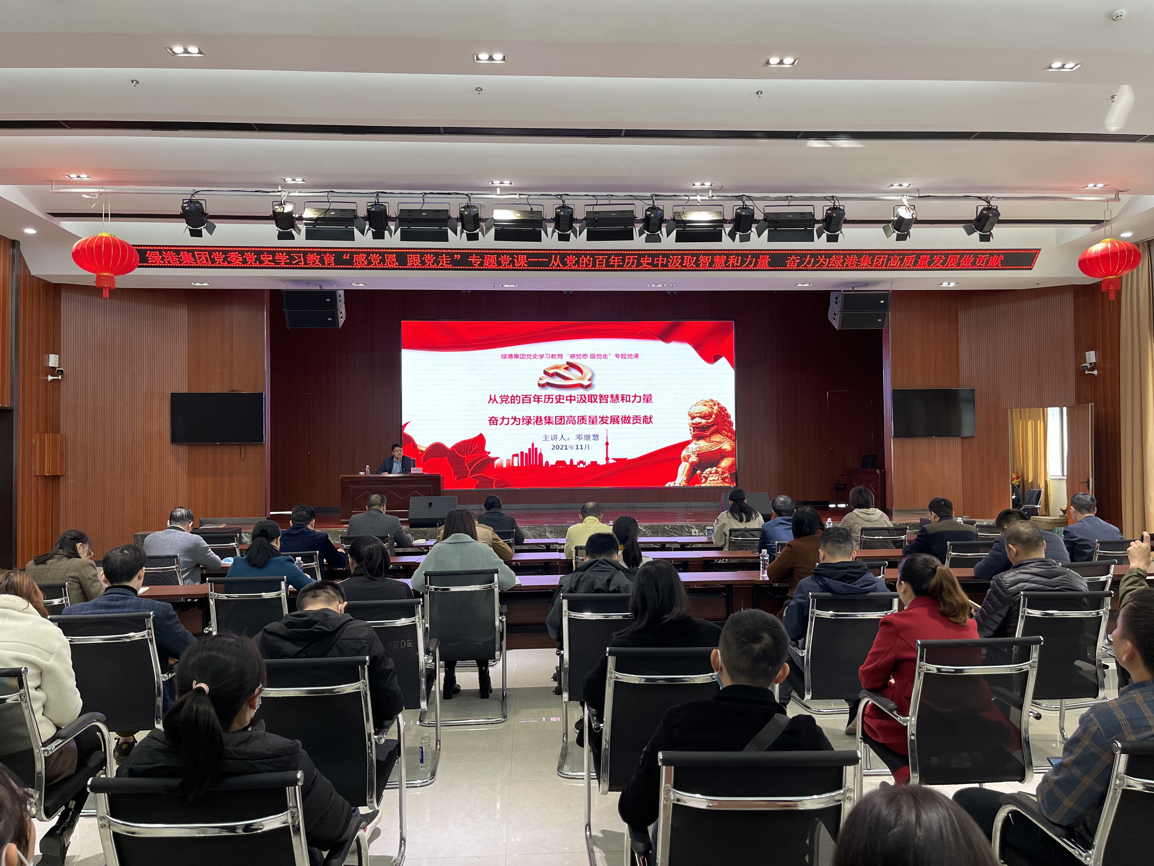 11月23日,綠港集團黨委開展黨史學習教育“感黨恩 跟黨走”專題黨課。集團黨委副書記、總經(jīng)理鄧繼慧以《從黨的百年歷史中吸取智慧和力量 奮力為綠港集團高質量發(fā)展做貢獻》為題,為集團全體黨員、發(fā)展對象、入黨積極分子講授黨課。