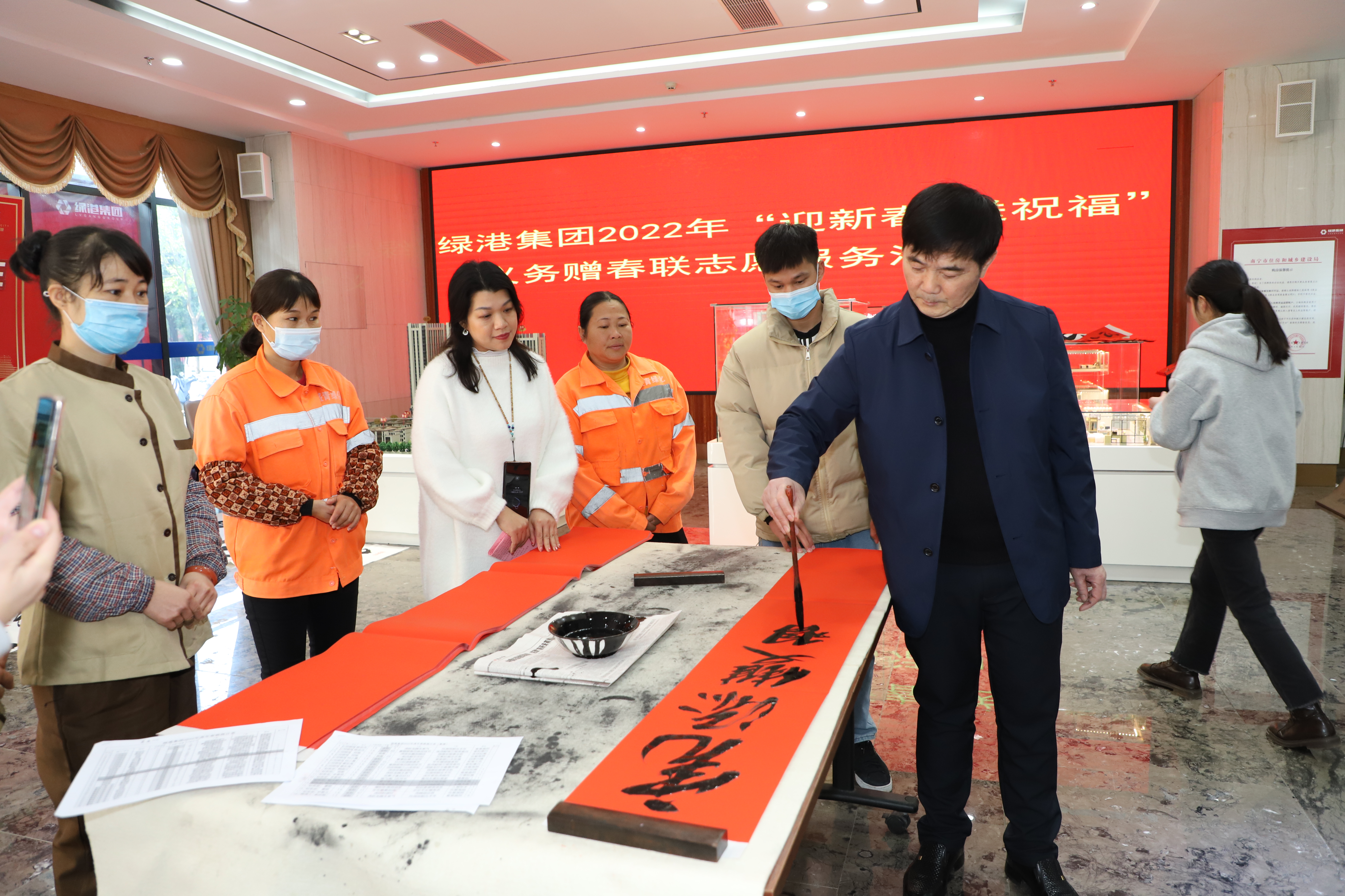 寫春聯(lián)送祝福,濃濃墨香迎新年。為弘揚優(yōu)秀傳統(tǒng)文化,營造歡樂祥和、喜慶熱烈的濃厚節(jié)日氛圍,1月17日-19日,綠港集團黨委、綠港集團工會組織開展2022年“迎新春·送祝?!绷x務(wù)贈春聯(lián)志愿服務(wù)活動。