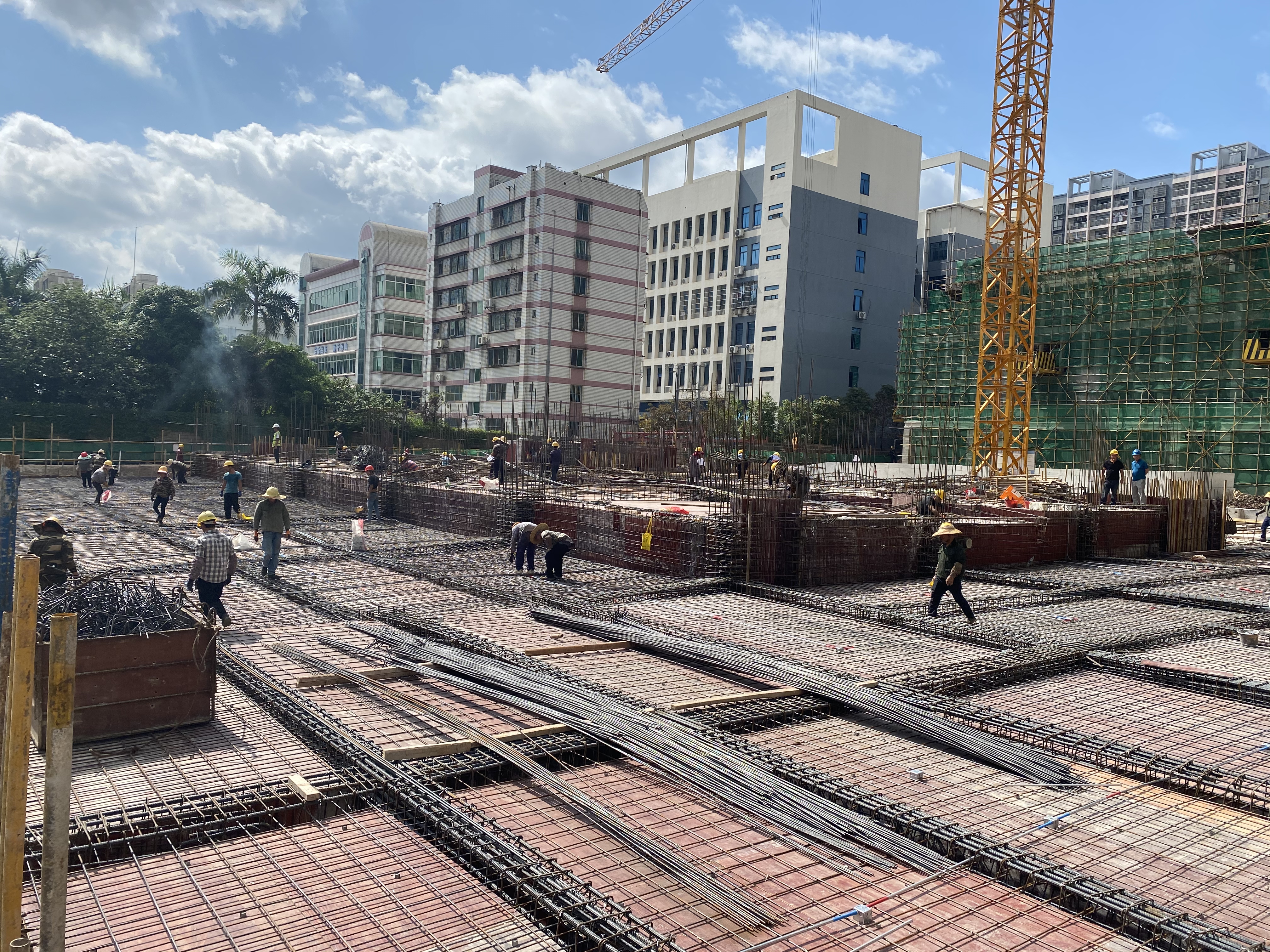 按照施工計(jì)劃,項(xiàng)目2#樓為最后施工的一個(gè)單體。因工作面有限,加上雨季施工,土方施工遭遇到前所未有的困難,最后幾千立方土,每一方都需要勾機(jī)采用二次甚至三次轉(zhuǎn)運(yùn)的方式才能裝車(chē)外運(yùn),對(duì)預(yù)定工期兌現(xiàn)造成極大影響。為克服困難,自土方開(kāi)挖以來(lái),綠港集團(tuán)下屬嘉通公司緊盯預(yù)售節(jié)點(diǎn)為目標(biāo),結(jié)合工程實(shí)際,制定了詳細(xì)、合理的搶工計(jì)劃,并迅速建立一支“強(qiáng)管理、控疫情、重安全、抓質(zhì)量”工作團(tuán)隊(duì),全員爭(zhēng)分奪秒追上施工“加速列車(chē)”,與時(shí)間賽跑。同時(shí)要求參建單位優(yōu)化每道施工工序搭接,合理穿插施工,實(shí)行小雨不停工、大雨制造條件施工、天晴三班制搶工的施工方案。在先后克服了疫情反復(fù)、揚(yáng)塵噪音管控以及惡劣天氣帶來(lái)的各種問(wèn)題,最終于6月30日取得喜人進(jìn)展,項(xiàng)目順利完成全部地下室工程的主體施工。