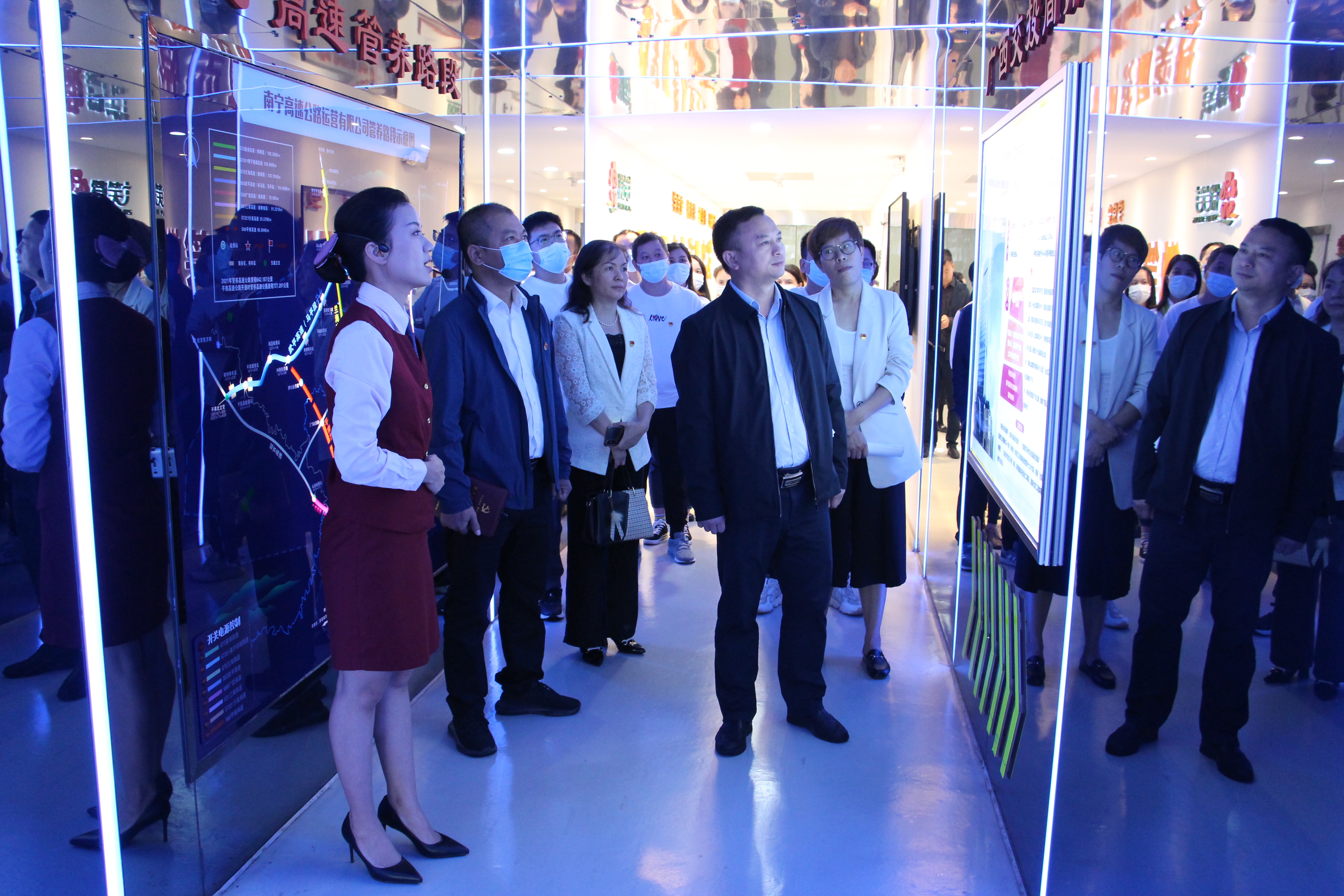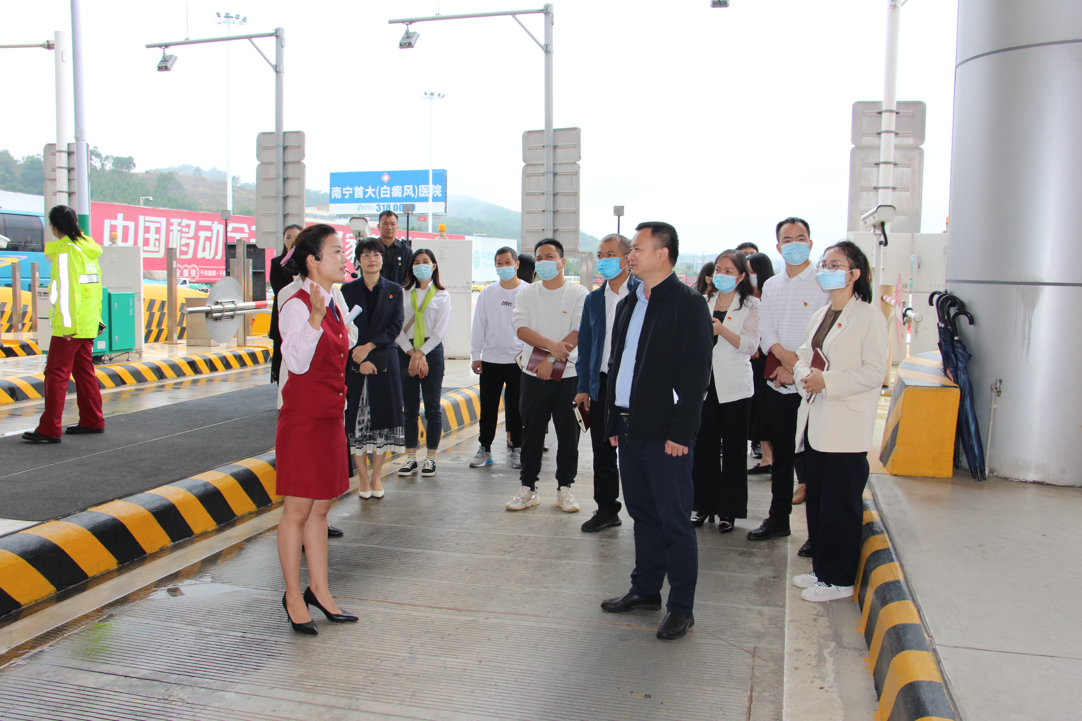 正值學(xué)習(xí)黨的二十大的熱潮時期,為進一步加強黨建聯(lián)建工作經(jīng)驗交流,促進黨支部的黨建管理提升及業(yè)務(wù)發(fā)展,11月18日,綠港集團下屬嘉通公司黨支部紀(jì)檢委員、嘉通公司總經(jīng)理何小勇帶領(lǐng)嘉通公司黨支部一行赴廣西交通投資集團南寧高速公路運營有限公司六律基地開展“觀交投佳績示范點 促黨建業(yè)務(wù)上水平”主題黨日活動并進行參觀交流學(xué)習(xí)。嘉通公司黨支部共16名黨員參加此次活動。