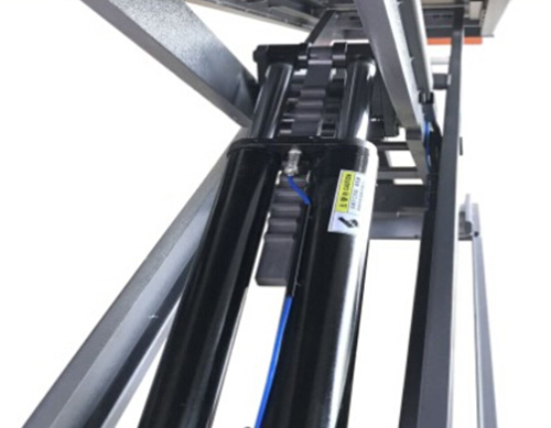 ◆整機(jī)6油缸設(shè)計(jì),液壓同步,雙液壓系統(tǒng)、液壓鎖和機(jī)械三重保險(xiǎn)裝置,下降自動(dòng)解鎖。